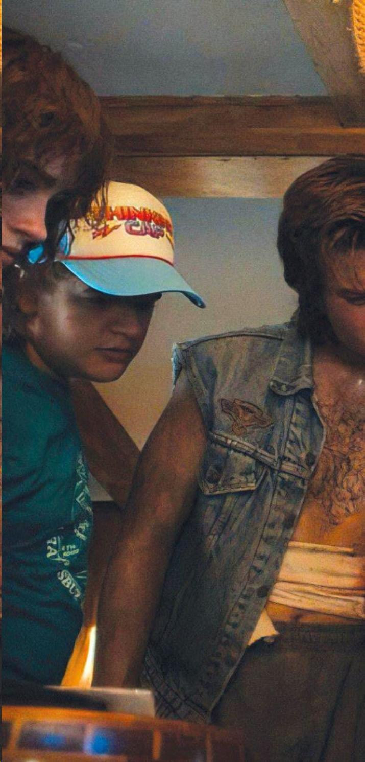 成功往往带来续集,而《怪奇物语》第二季——巧妙地以万圣节为背景,并命名为《怪奇物语2》——在首季播出后不到一年便紧随其后登场。延续詹姆斯·卡梅隆经典作品《异形》与《终结者2》的风格,达菲兄弟将故事的尺度进一步扩大:不仅拓展了世界观,还引入了更宏大的威胁——这一次是庞然大物“Mind Flayer”(思想吞噬者)。他们还巧妙利用剧情设定,强调三位年轻主角正在成长——毕竟,当第三季于2019年播出时,他们已经不再是当年那群高中生。约翰·休斯(John Hughes)笔下的高中校园电影,如今也成了这些阿姆林式经典作品的重要灵感来源。
