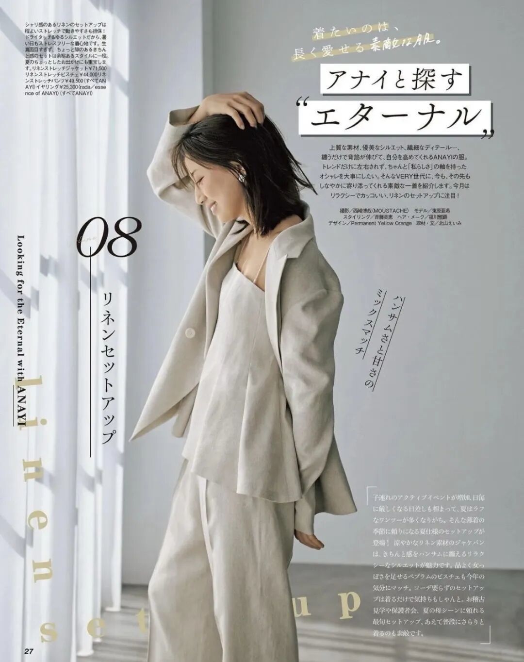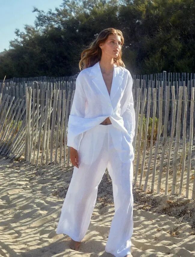 随着天气越来越热,衣橱里取而随着代之的,是几件薄如蝉翼的衬衫、一条垂坠感极佳的阔腿裤、一件微廓形的亚麻西装外套。