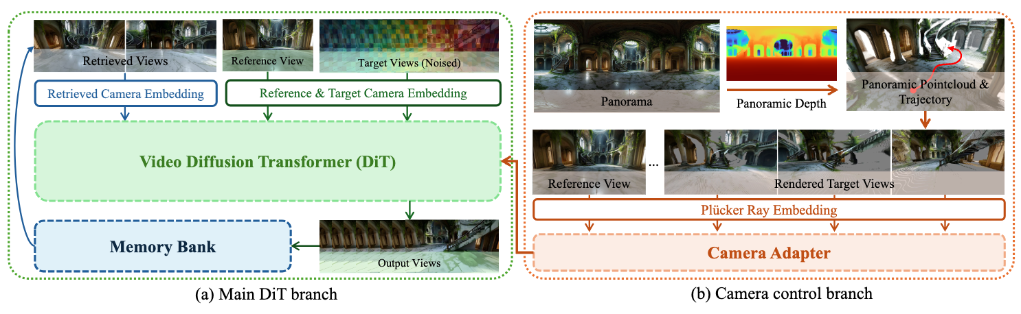这一步的关键创新在于“精确的相机控制 + 细粒度视觉细节保持 + 空间一致性记忆机制”,这一套流程可以确保新生成的区域与已有区域在几何和视觉上完美衔接,不会“穿帮”。通过记忆力机制的设计以及体系化的中间训练和后训练,团队打造了目前业界最强的新视角生成(NVS)模型HY-WorldStereo。生成画面对输入相机的精准跟随,且多条运镜的生成结果保持空间一致不会有冲突;通过后训练算法的设计,使得保持快速生成的同时画面质量不会衰减。